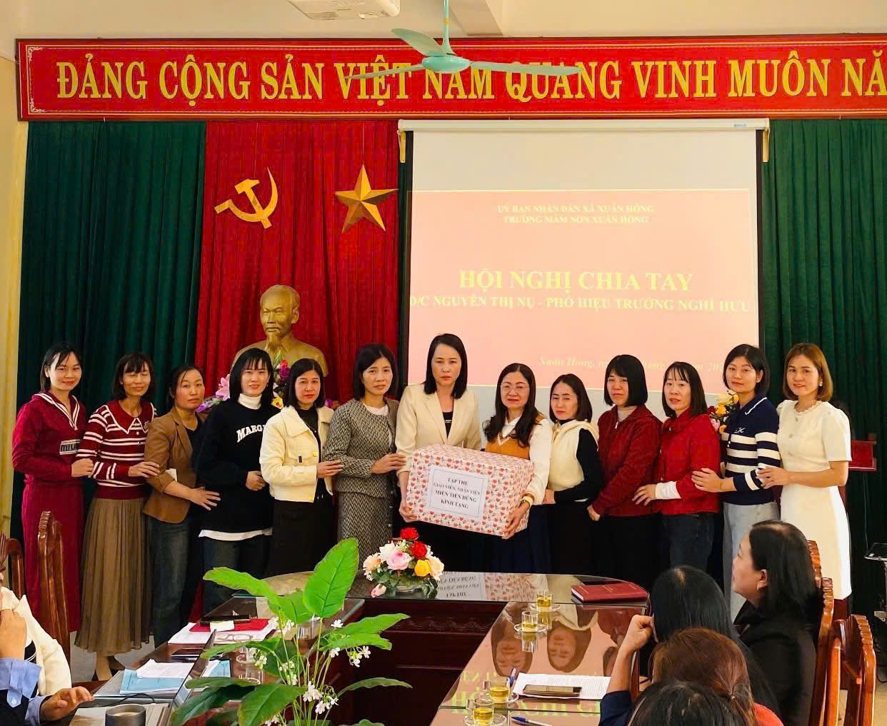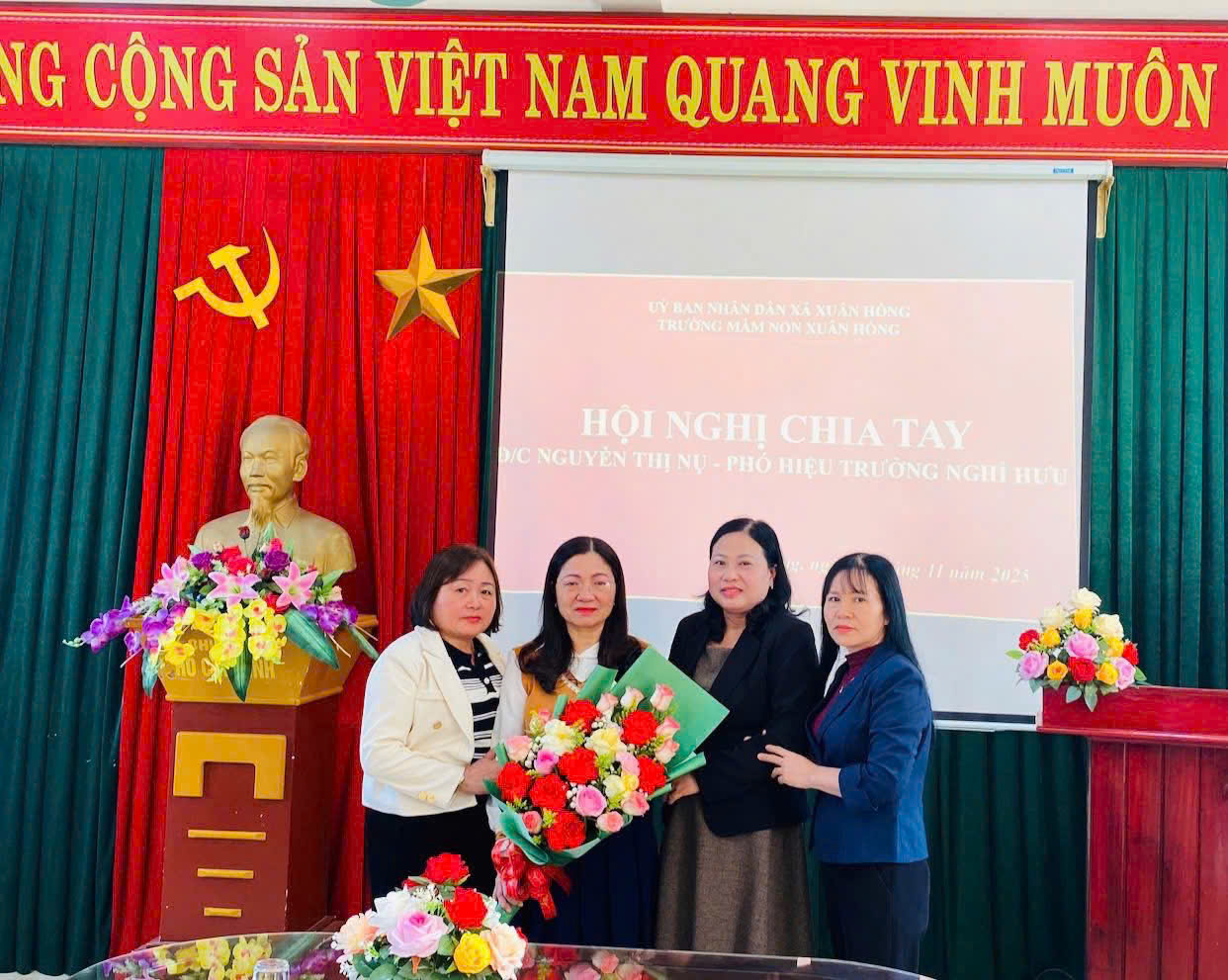 Kể cũng không hết được những đóng góp to lớn, những cống hiến của cô với mái trường mầm non Xuân Hồng này, đó là là tình cảm, là sự dìu dắt biết bao thế hệ học trò, tấm lòng tận tuỵ, cần mẫn, nhiệt tình của cô trong công tác. Chia tay cô chúng ta không thể nào quên hình ảnh người đồng nghiệp, người chị ân cần, chan hoà, cởi mở. Những lời động viên của cô sẽ mãi mãi theo chúng tôi trong hành trang phía trước.