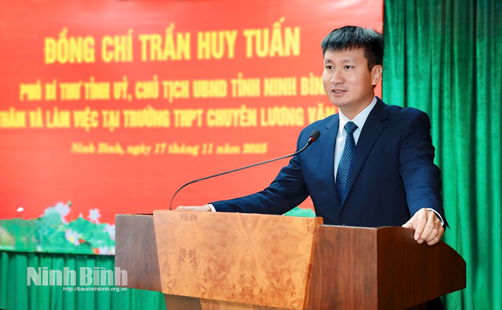 Sáng 17/11, đồng chí Trần Huy Tuấn, Phó Bí thư Tỉnh ủy, Chủ tịch UBND tỉnh đã đến thăm, chúc mừng các thầy cô giáo Trường THPT chuyên Lương Văn Tụy nhân kỷ niệm 43 năm Ngày Nhà giáo Việt Nam (20/11/1982-20/11/2025). Cùng tham gia đoàn có các đồng chí lãnh đạo Sở Giáo dục và Đào tạo; Văn phòng UBND tỉnh.