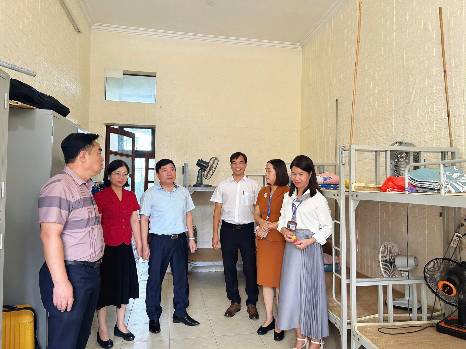 Trực tiếp kiểm tra thực tế, đồng chí Giám đốc Sở Nguyễn Tiến Dũng cùng đoàn công tác đã đi thăm các lớp học và dành sự quan tâm đặc biệt đến khu vực bếp ăn, nhà ăn và các phòng ở nội trú của học sinh. Đồng chí đã ân cần thăm hỏi điều kiện sinh hoạt, học tập của các em, lắng nghe những chia sẻ, tâm tư của cả giáo viên và học sinh.