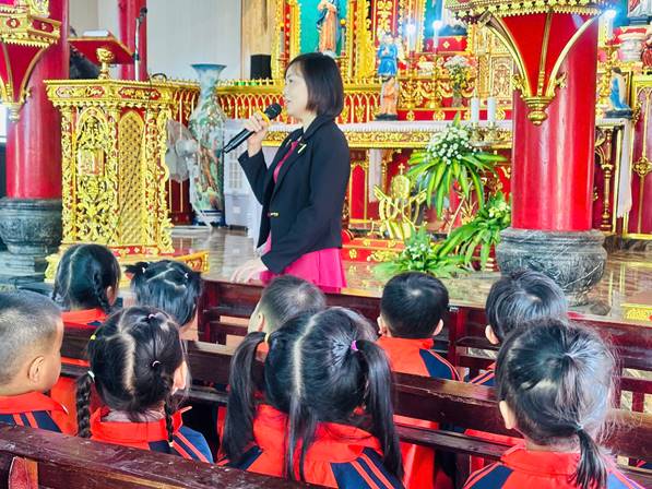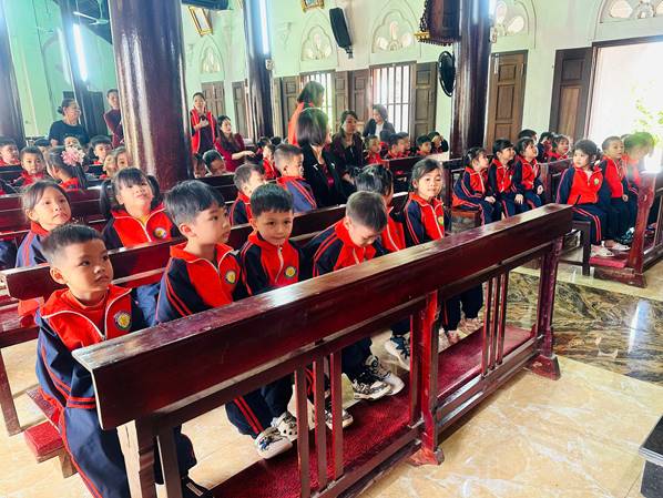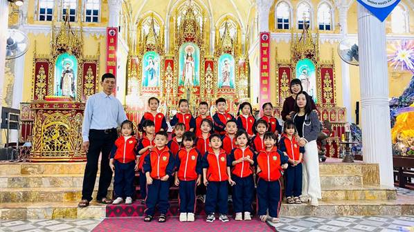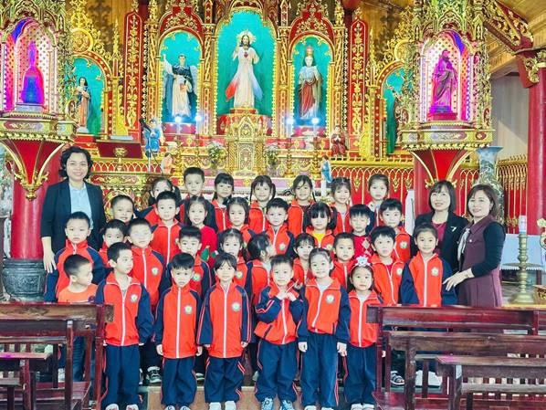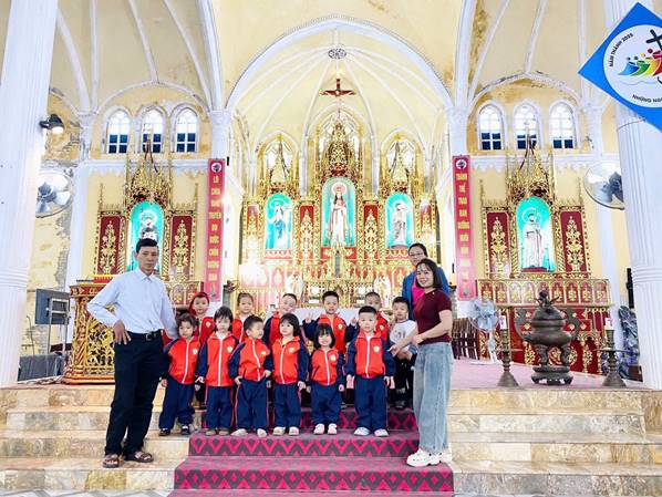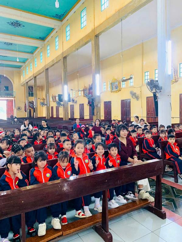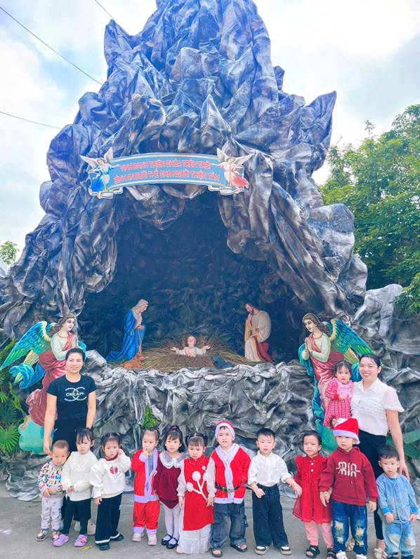 Nhân dịp Giáng sinh đang đến gần, các cô và các con đã có một buổi tham quan các hang đá và nhà thờ giáo xứ Ngọc Tiên, giáo xứ Lục Thuỷ, giáo họ Phú Yên, giáo họ Đồng Nê trong không khí rộn ràng, ấm áp của mùa Noel. Tại các hang đá, các con thích thú quan sát những hình ảnh quen thuộc của mùa Giáng sinh, lắng nghe Quý Thầy, các cô giáo giới thiệu về ý nghĩa của ngày Noel, về sự yêu thương, chia sẻ và bình an. Khi đến nhà thờ, các con được chiêm ngưỡng không gian trang trí lung linh, những ánh đèn rực rỡ và cây thông Noel xinh xắn, tạo nên một khung cảnh thật ấm áp và thiêng liêng.