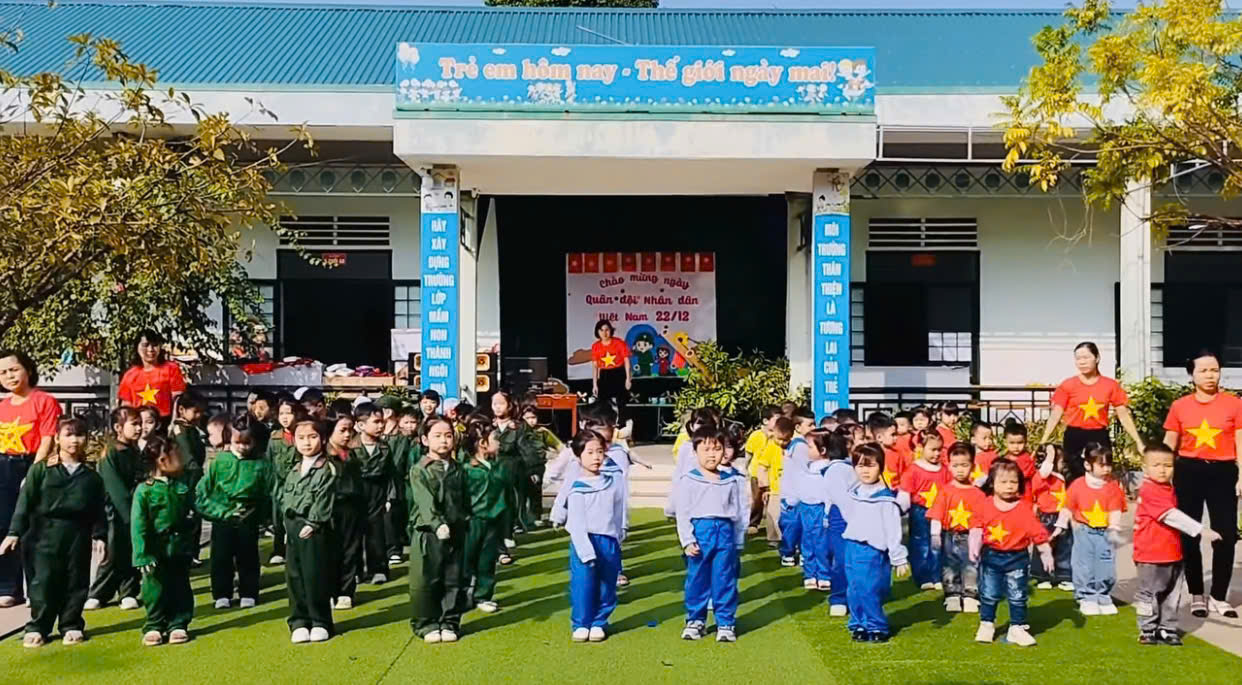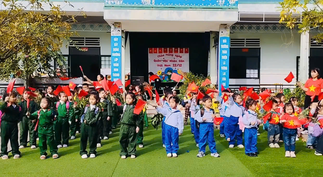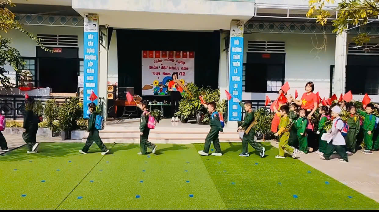 Tham gia chương trình các bé được nghe cô giáo kể chuyện về lịch sử quân đội nhân dân Việt Nam, được xem hình ảnh về những người lính đang ngày đêm canh giữ biên cương, hải đảo, không khí trở nên sôi nổi khi các bé cùng nhau biểu diễn văn nghệ, qua những câu chuyện giản dị, gần gũi, các bé hiểu và thêm yêu hình ảnh người lính Cụ Hồ anh hùng, kiên cường nhưng cũng rất thân thiện gần gũi.