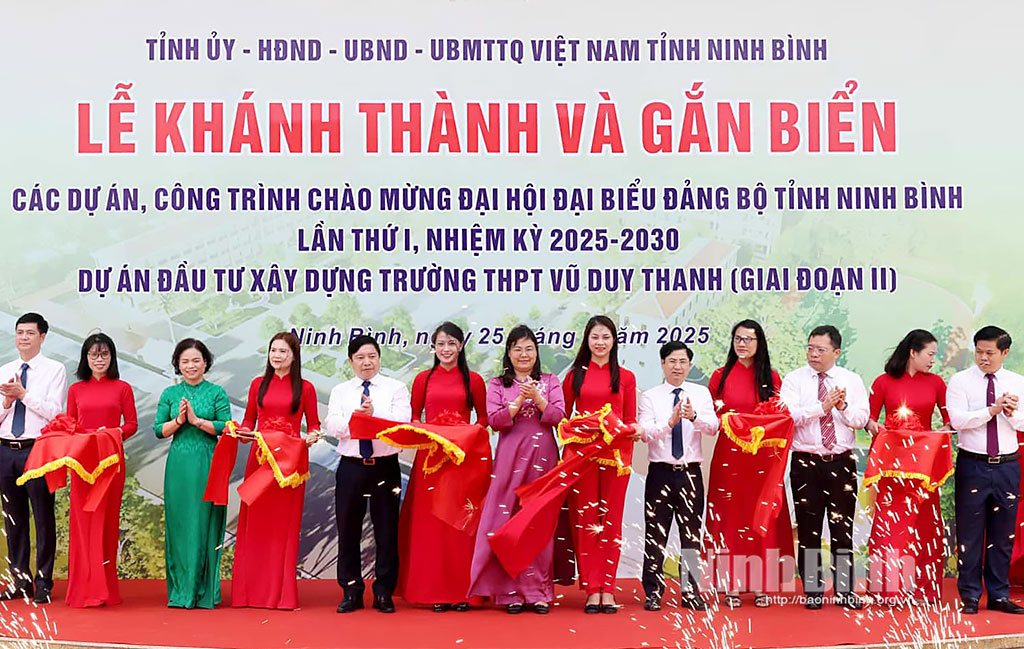 Sáng 25/9, tại xã Khánh Thiện, UBND tỉnh tổ chức lễ khánh thành và gắn biển công trình xây dựng Trường THPT Vũ Duy Thanh (giai đoạn 2). Đây là một trong các công trình chào mừng Đại hội đại biểu Đảng bộ tỉnh Ninh Bình lần thứ I, nhiệm kỳ 2025-2030.
