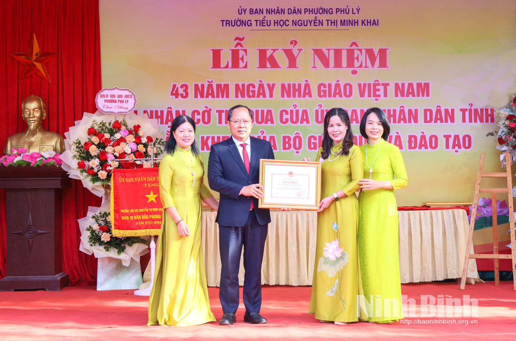 * Dự lễ kỷ niệm tại Trường Tiểu học Nguyễn Thị Minh Khai (phường Phủ Lý) có lãnh đạo Sở Giáo dục và Đào tạo Ninh Bình, lãnh đạo phường Phủ Lý.