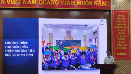 Đại diện Room to Read Việt Nam, Ông Vi Hải Nam, bà Đàm Thị Thu Giang báo cáo đánh giá kết quả triển khai mô hình thư viện thân thiện RtR tại tỉnh Ninh Bình từ năm 2019 đến nay (tỉnh Hà Nam, Ninh Bình, Nam Định cũ). Báo cáo đánh giá những kết quả đạt được, những khó khăn, hạn chế trong quá trình triển khai, đồng thời đưa ra phương hướng kế hoạch thực hiện trong thời gian còn lại của năm 2025 và giai đoạn 2026-2030.