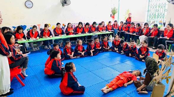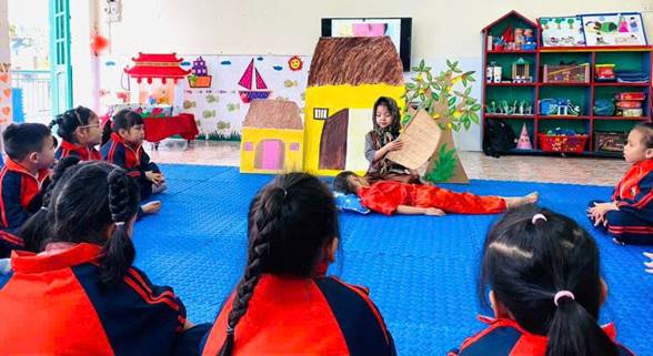 Giáo viên đã linh hoạt sử dụng đa dạng phương pháp như: kể chuyện bằng AI, rối, rạp chiếu bóng, video ngắn, đóng vai nhân vật, đặt câu hỏi mở… Qua đó giúp trẻ hiểu nội dung tác phẩm một cách tự nhiên, không gò ép, không học thuộc máy móc.