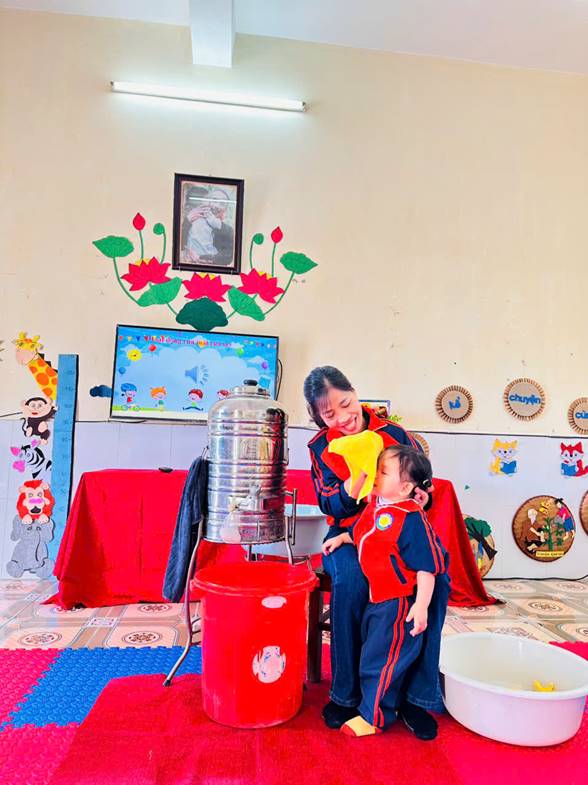 Trước hết, hoạt động vệ sinh cá nhân giúp trẻ hình thành những thói quen ban đầu như rửa tay, lau mặt, đi vệ sinh đúng cách. Ở độ tuổi này, trẻ còn nhỏ, chưa tự lập hoàn toàn nên cần sự hướng dẫn nhẹ nhàng, kiên nhẫn của người lớn. Khi được thực hiện thường xuyên trong không khí vui vẻ, gần gũi, trẻ sẽ hợp tác tốt hơn, cảm thấy an toàn và dần biết giữ gìn cơ thể sạch sẽ. Đây là nền tảng quan trọng cho việc rèn nếp sống gọn gàng, ngăn nắp sau này.