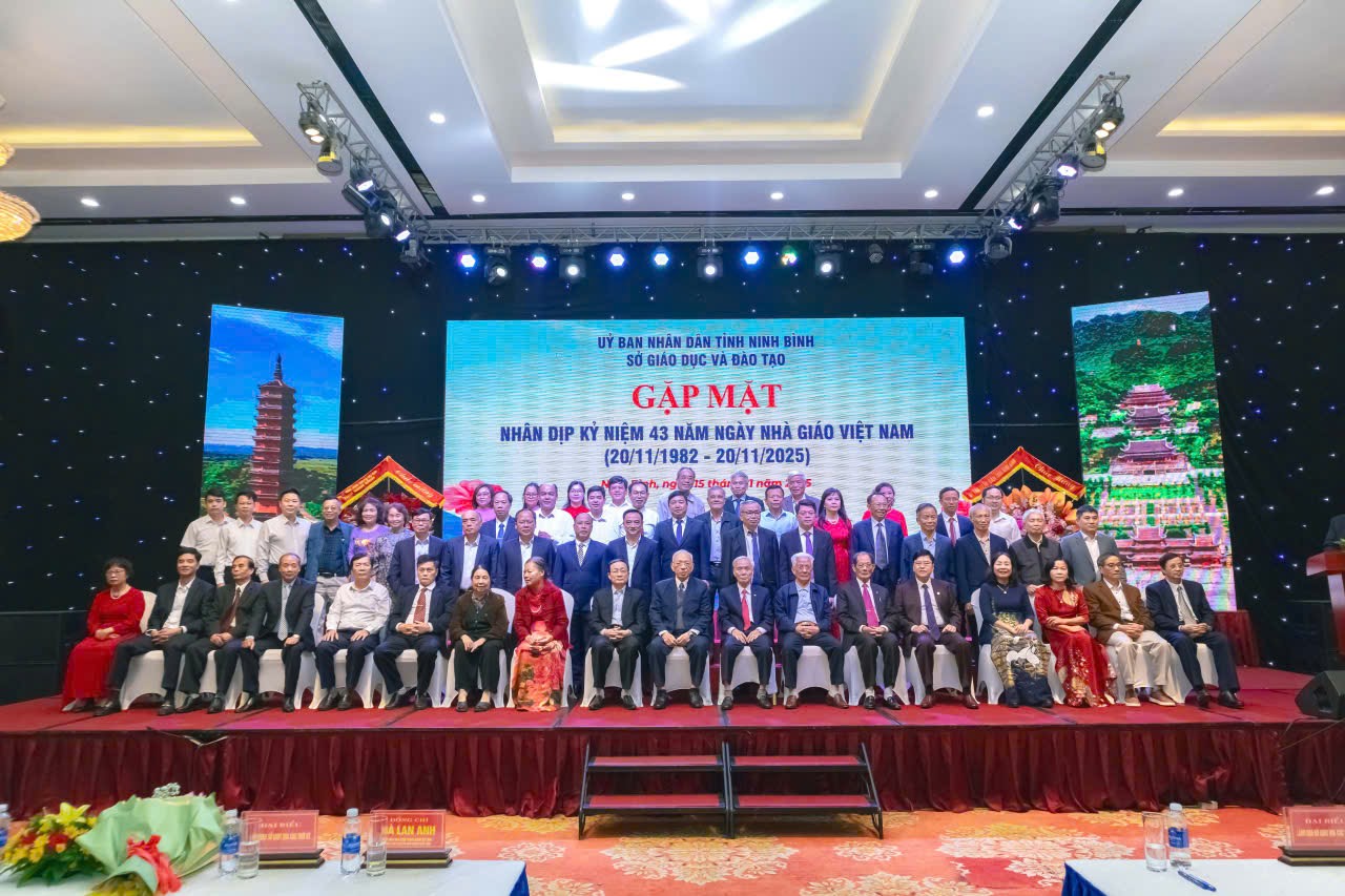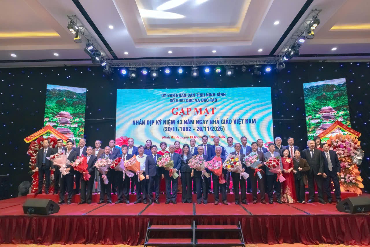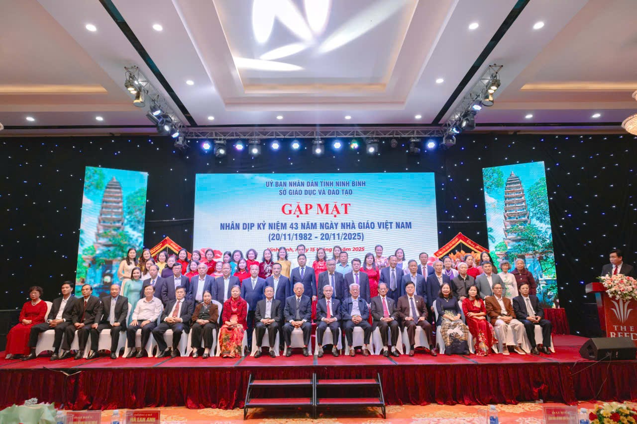 Sáng ngày 15/11/2025, trong không khí phấn khởi của cả nước hướng về ngày Nhà giáo Việt Nam, Sở Giáo dục và Đào tạo (GDĐT) tỉnh Ninh Bình đã long trọng tổ chức buổi Gặp mặt nhân dịp kỷ niệm 43 năm Ngày Nhà giáo Việt Nam (20/11/1982 – 20/11/2025). Buổi gặp mặt mang ý nghĩa đặc biệt khi là sự kiện tri ân đầu tiên được tổ chức sau khi địa giới hành chính ba tỉnh Ninh Bình, Nam Định và Hà Nam chính thức sáp nhập từ ngày 01/7/2025. Đây là dịp để các thế hệ cán bộ, công chức Sở GDĐT từ ba tỉnh hội tụ trong một mái nhà chung, cùng ôn lại truyền thống và tiếp nối chặng đường phát triển mới.