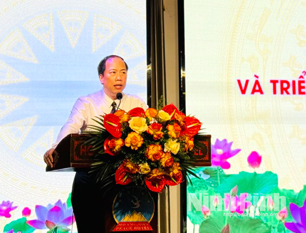 Đông chí Đinh Quốc Trường, Phó Giám đốc Sở Giáo dục và Đào tạo phát biểu tại hội nghị